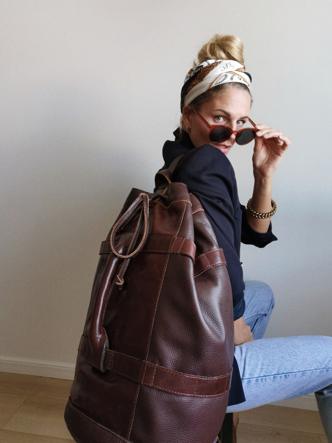 • Plecak z grubej skóry naturalnej