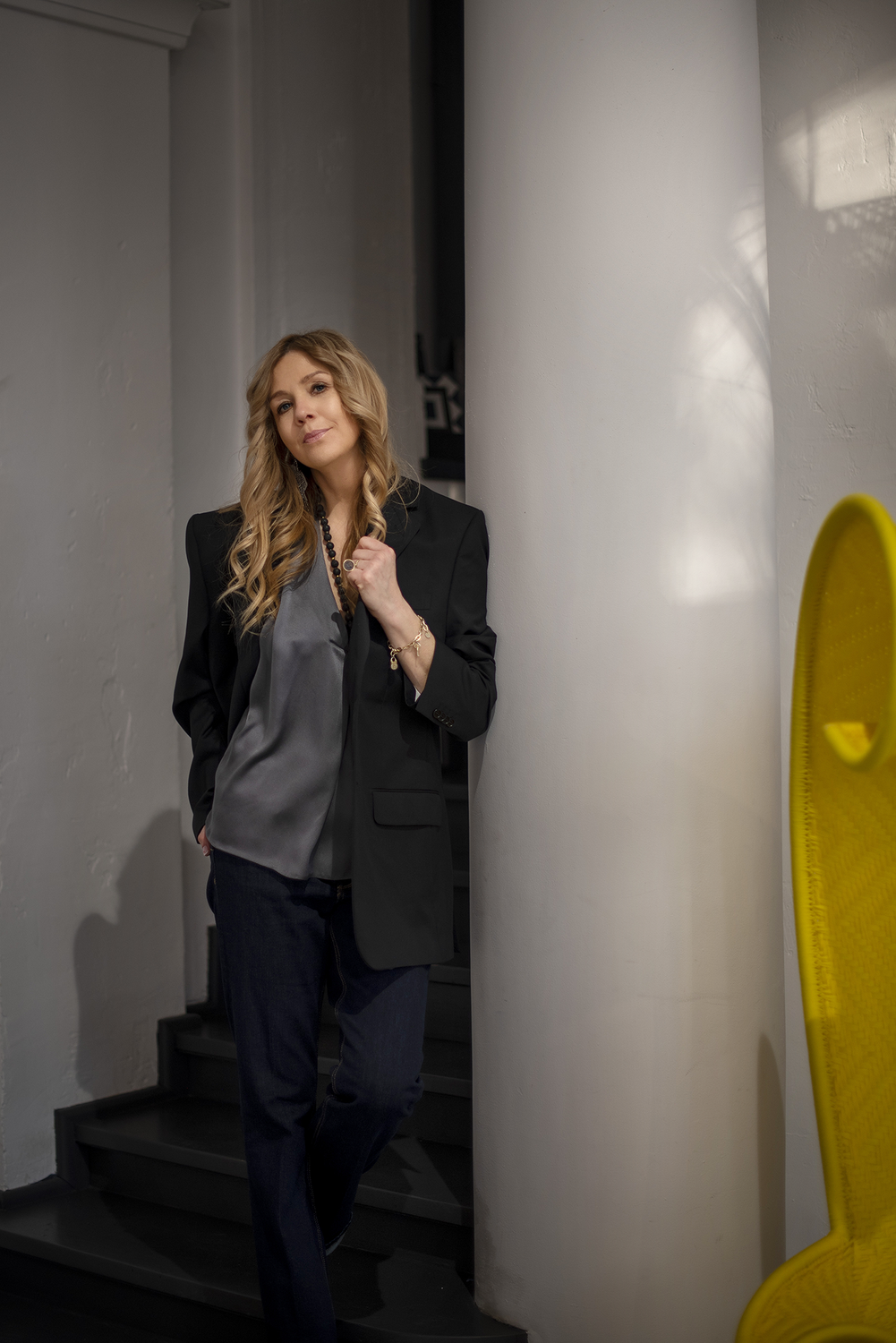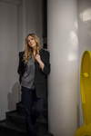 Bluzka dobrze prezentuje się z marynarkami, dwoma fasonami spódnic, czy oryginalnymi spodniami z kolekcji Bruno Saint.