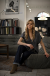 Dopracowany, kobiecy fason z v-dekoltem o głębokości nadającej lekkości bluzce. Ta jedwabna bluzka jest idealnym rozwiązaniem pod marynarki, kardigany i płaszcze. Długość bluzki jest stosowny do spódnic, cygaretek czy jeansów.