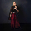 Maxi spódnica w dużą kratę w kolorach przytłumionej, ciemnej czerwieni i czerni.