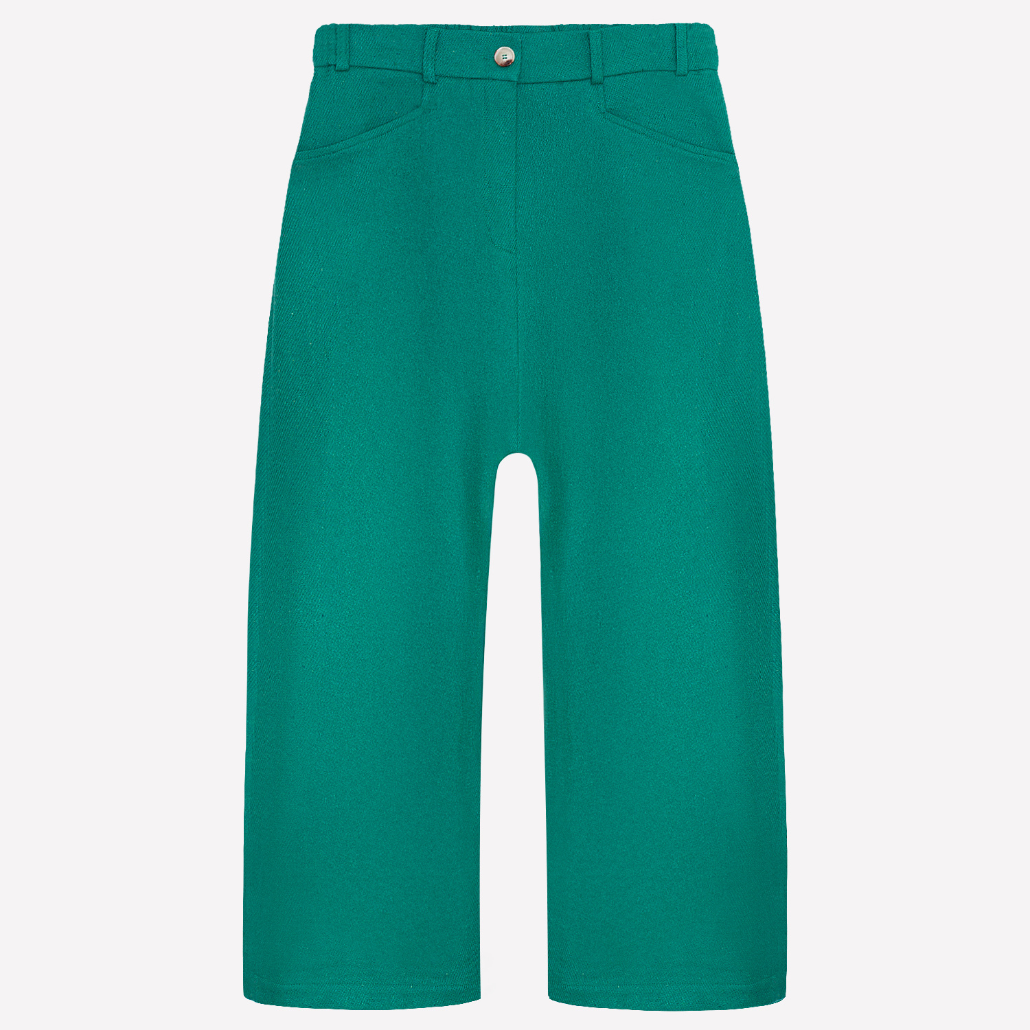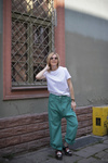 Spodnie w kolorze intensywnym turkusowym.