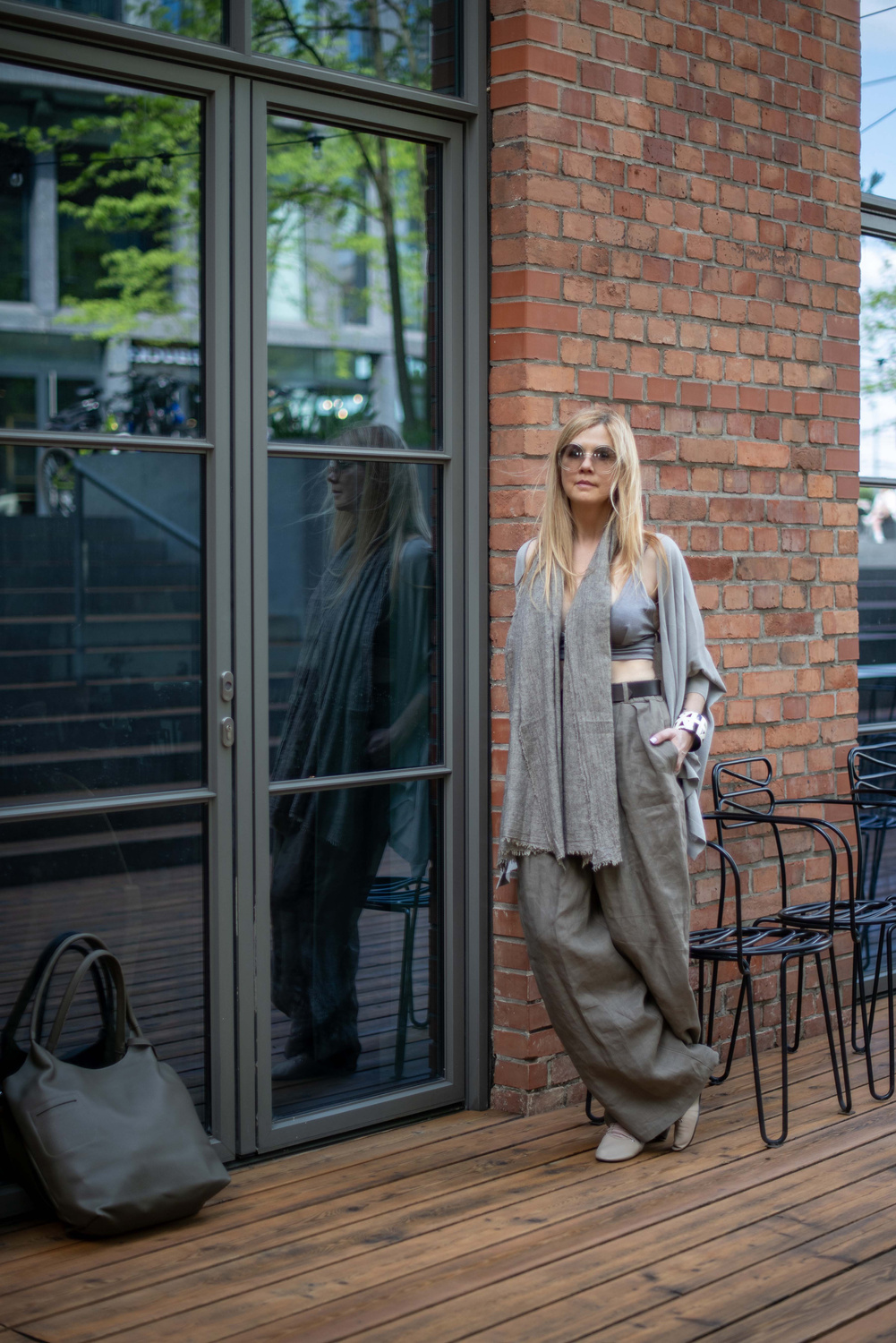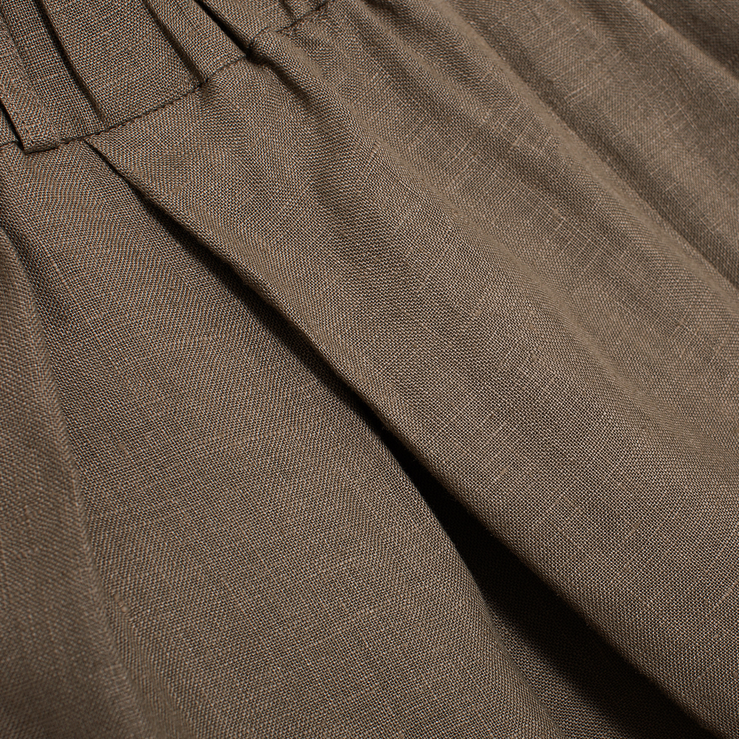 Jakościowy wygląd tej konkretnie lnianej tkaniny powoduje, że spodnie dobrze wyglądają również w połączeniu z jedwabną odzieżą, co nie jest dla lnu standardową cechą.