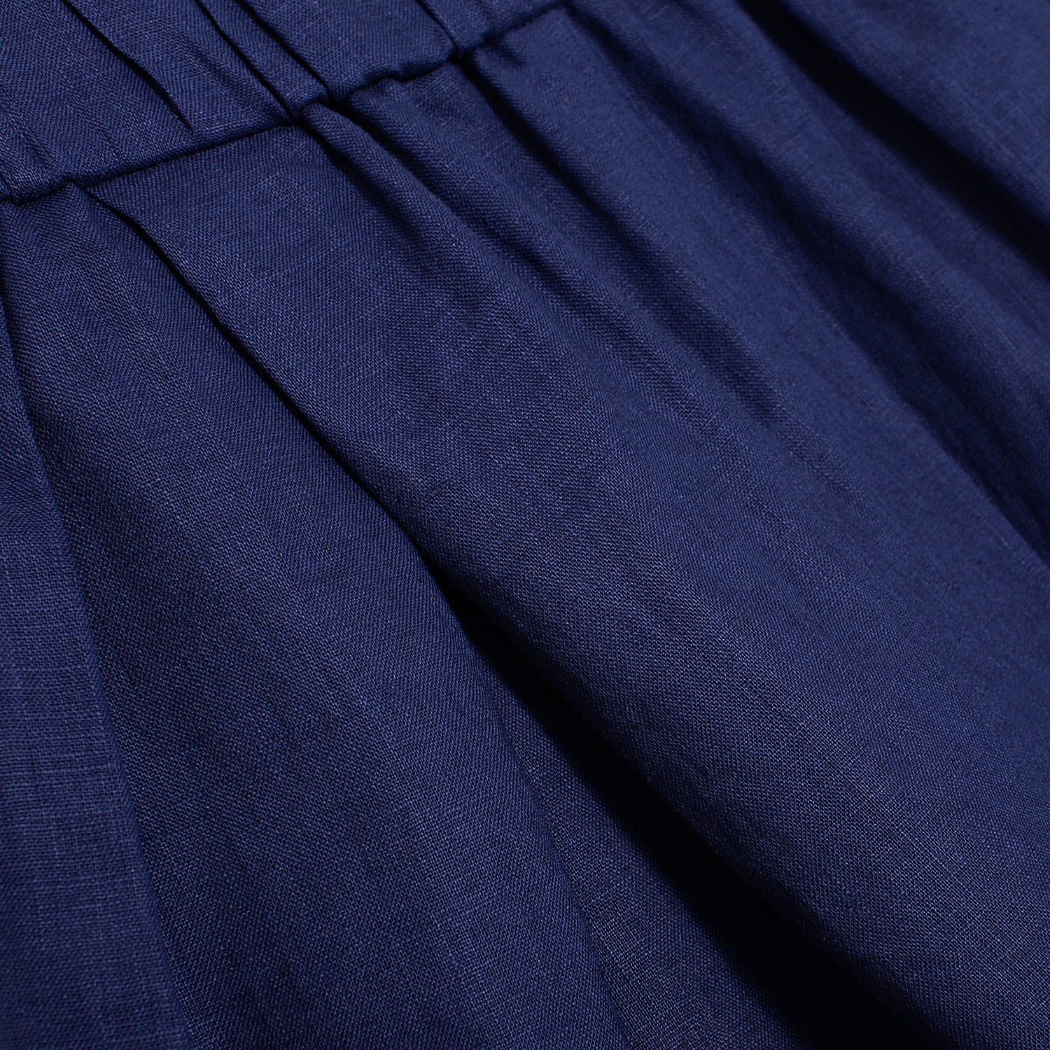 GRANATOWE SPODNIE Z ZAKŁADKAMI Z EKOLOGICZNEGO WŁOSKIEGO LNU, KOMFORTOWY KRÓJ
