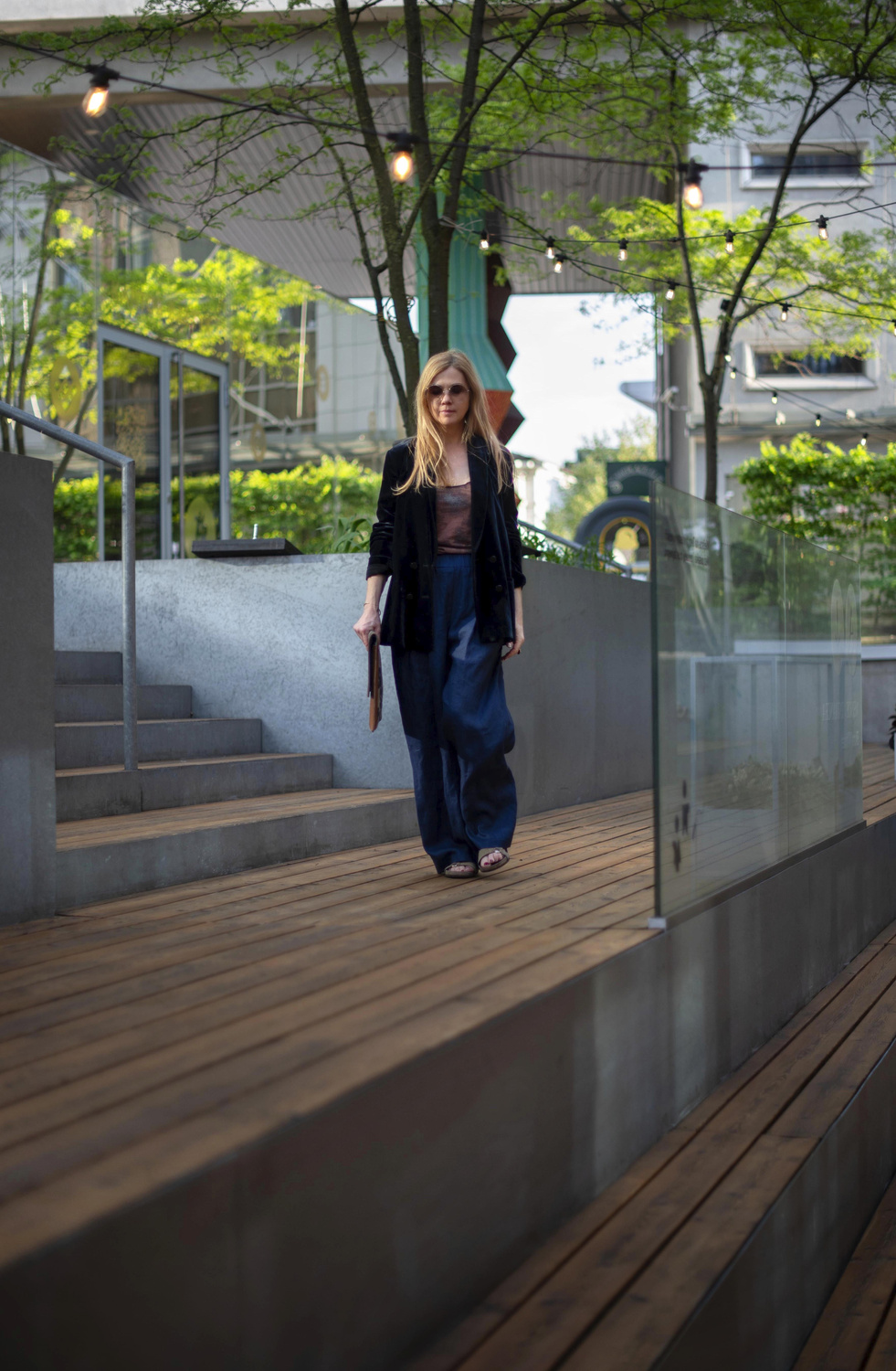 Jakościowy wygląd tej konkretnie lnianej tkaniny powoduje, że spodnie dobrze wyglądają również w połączeniu z jedwabną odzieżą, co nie jest dla lnu standardową cechą.