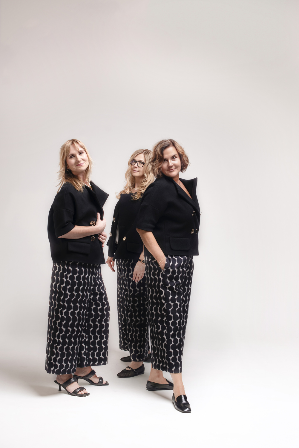 Spódnica o awangardowym kroju w łańcuchy nieregularnych kropek w kolorze złamanej bieli i czerni (grafitu).