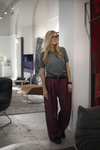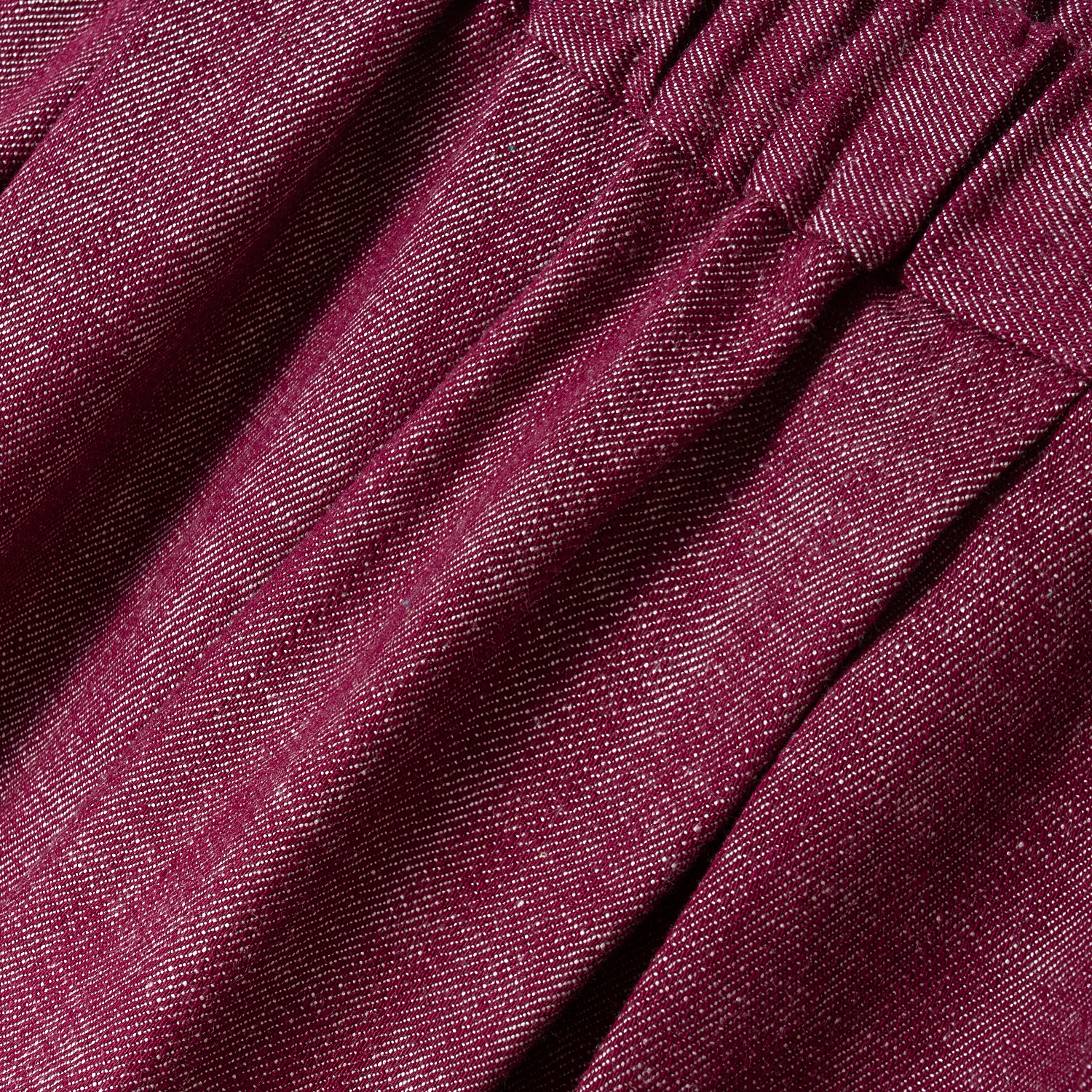 Wyróżnikiem tych spodni jest nieprzeciętny kolor grubszego denimu - bordowy, wiśniowy.