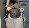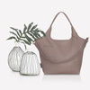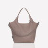 Beżowa torba ze skóry typu shopperbag. Torba w kolorze taupe. Torba wykonana z miękkiej, włoskiej skóry naturalnej o ciekawym, piaskowym, chłodnym odcieniu. Szyta ręcznie przez polskich rzemieślników w pojedynczych egzemplarzach. Wnętrze korpusu torby stanowi surowa skóra, bez podszewki. Ta skórzana torba, zapinana na zamek posiada dodatkowo w swej cenie: zintegrowaną kosmetyczkę na zamek z funkcją jej przypinania do wnętrza torby, długi pasek (przypinany opcjonalnie), wewnętrzny karabinek na pasku, umożliwiający przypięcie kluczy, identyfikatorów, kart, itp.